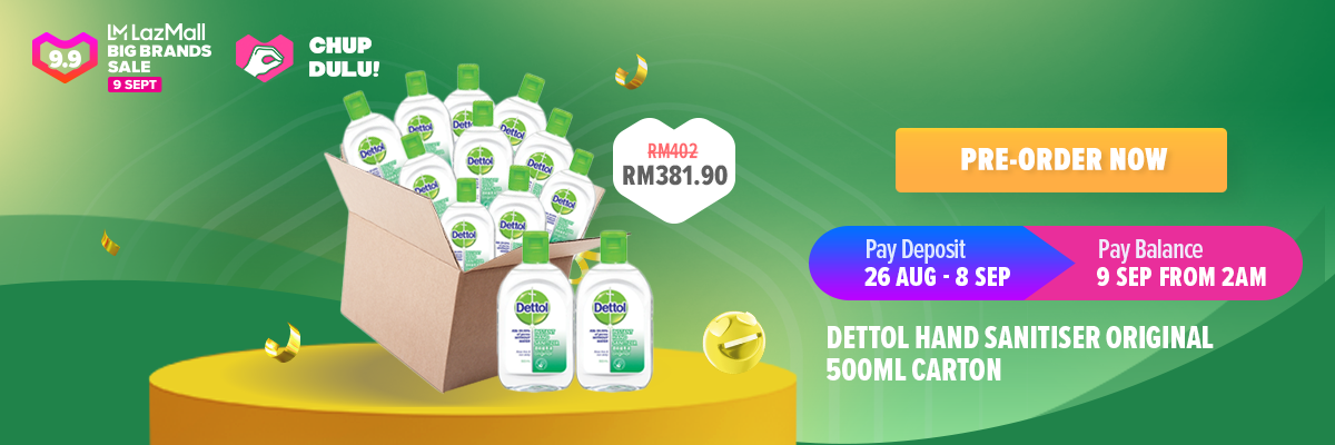 如果你有需要大量的Dettol搓手液,可以考虑购买这一箱有12瓶(500ml)的Dettol搓手液促销!一支Dettol搓手液 500ml的市场价是RM39.90,如果你现在Lazada App预购,平均下来一支Dettol搓手液 500ml只需要RM31.83!非常值得考虑!