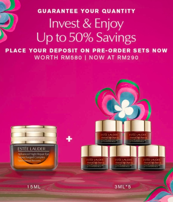 Chup Dulu 优惠怎么可以少了Estee Lauder呢?Estee Lauder的经典代表单品 – 小棕瓶,买50ml,送45ml,还等什么?现在就加入购物车吧!