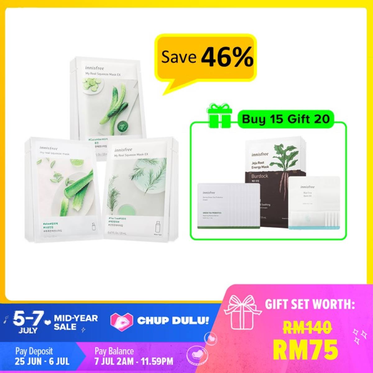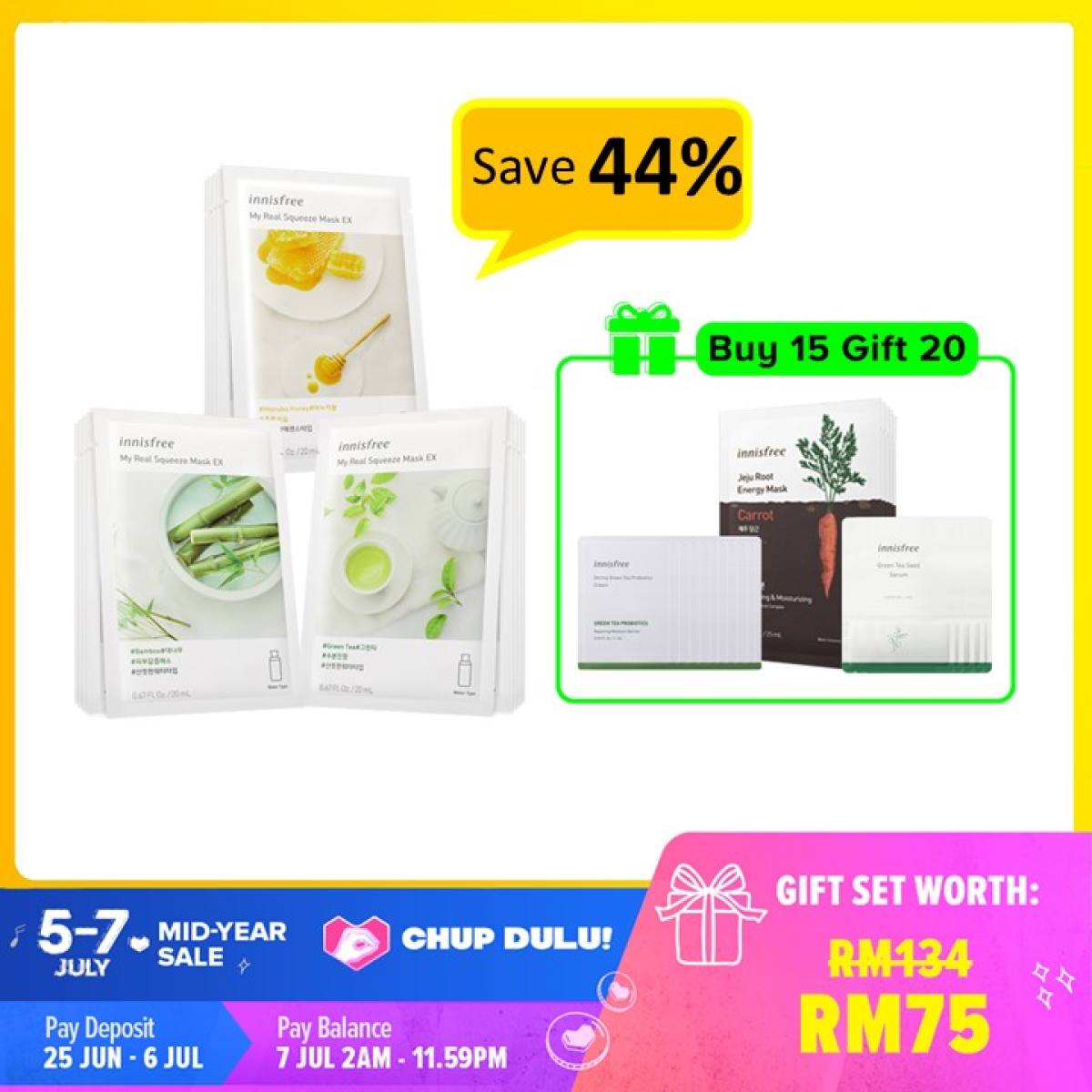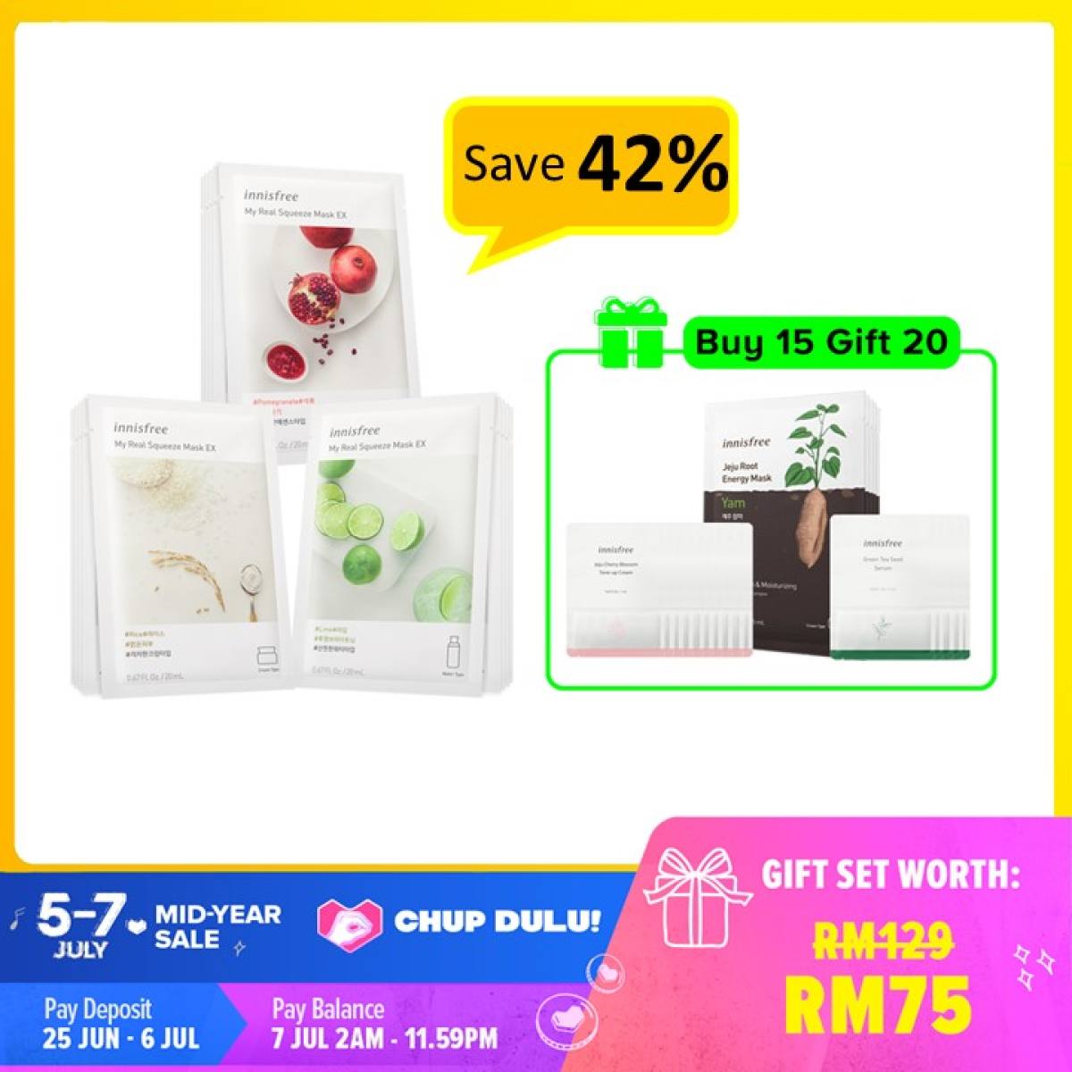 Innisfree 这次的Chup Dulu优惠超有诚意。全都是买1,送7件Free Gift。
