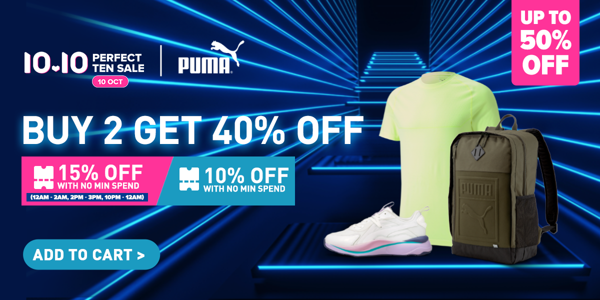 【10.10促销】Puma官网超级大减价 · 买2件额外40%折扣 · 超多鞋款从RM100+起!